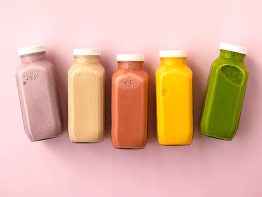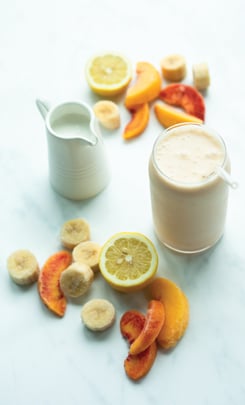 You can also make a big batch of smoothies and freeze them for later. Add the blended smoothie to a mason jar or other airtight container and leave about an inch in the container, as smoothies can expand when frozen.