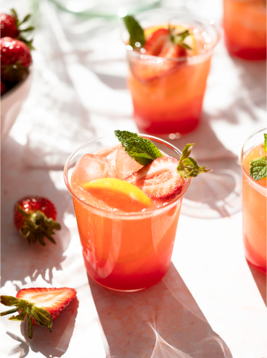 The only thing that can make lemonade even better is fresh strawberries. Enjoy this delicious drink on a hot summer afternoon.