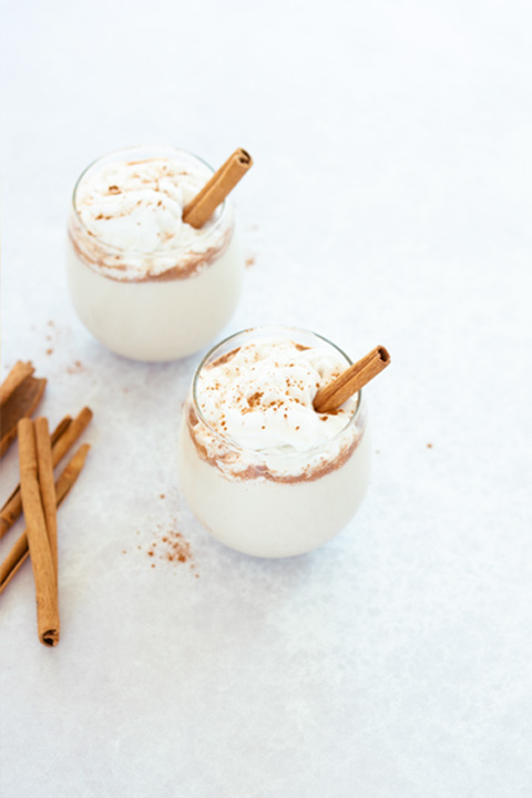 • Garnish with cinnamon stick and a dollop of coconut whipped cream (optional)