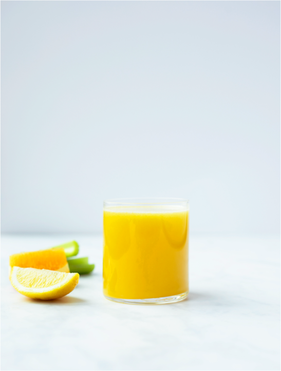 All that’s missing in this sunny, tropical juice is a little umbrella in your drink. The sweet flavors of orange and pineapple pair well with the zip of lemon and the earthiness of celery.