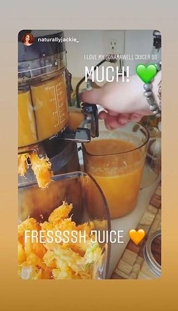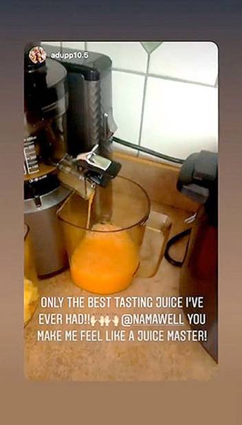 “Adore my Nama Juicer! Completely! I’m juicing every day. It’s my daily morning ritual following with workout and meditation. Celery, lemon, ginger, or citrus with aloe, depending on the day and what I crave the most. Beyond nurturing for the body and mind! So happy to be part of the Nama Family!”