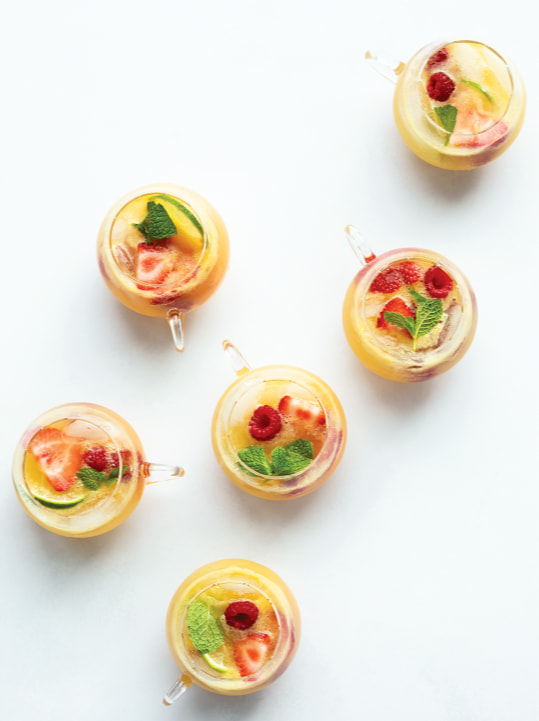 Tip: To make this punch extra festive, freeze large ice cubes filled with chopped fruit. Serve each glass with one large ice cube, and pour the punch over it. Top with some fresh mint.