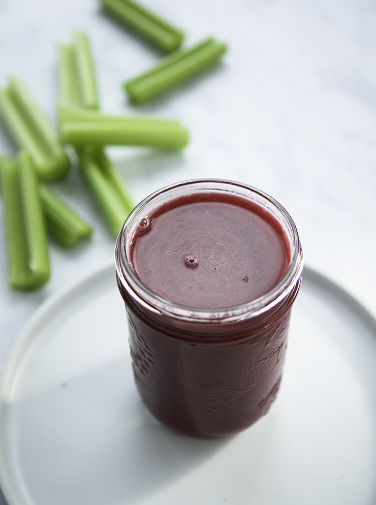 Purple red vegetables contain anthocyanins which are known for their potent antioxidant power. Enjoy this phytonutrient filled juice!