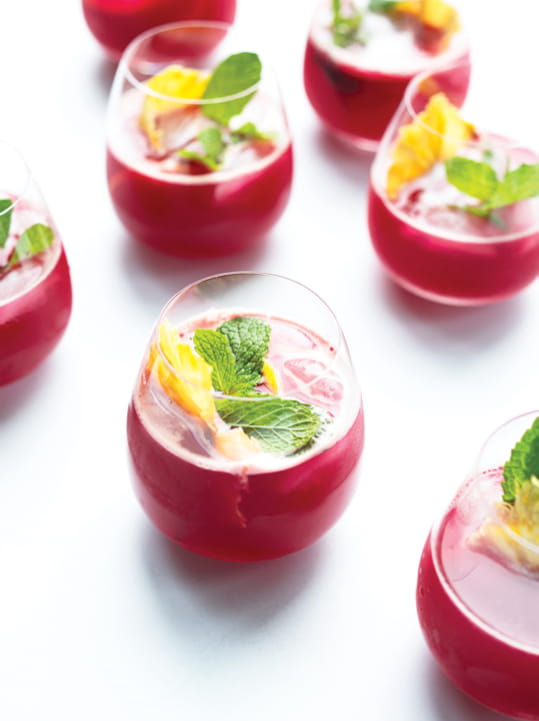 • Juice the pineapples, beets, cucumbers, and lemons. Skim off any excess foam.⁣