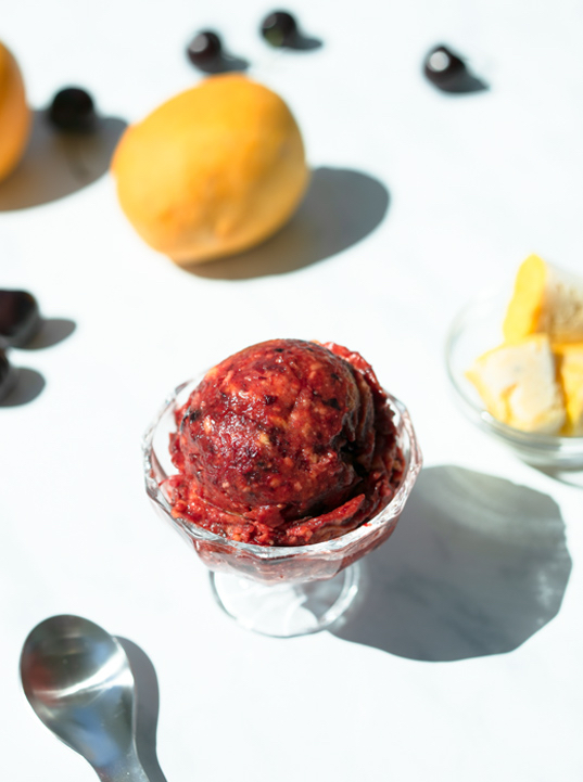 Try making this frozen treat to help cool down in the heat of summer. Cherries and mangoes are a great flavor combo full of antioxidants and vitamins.
