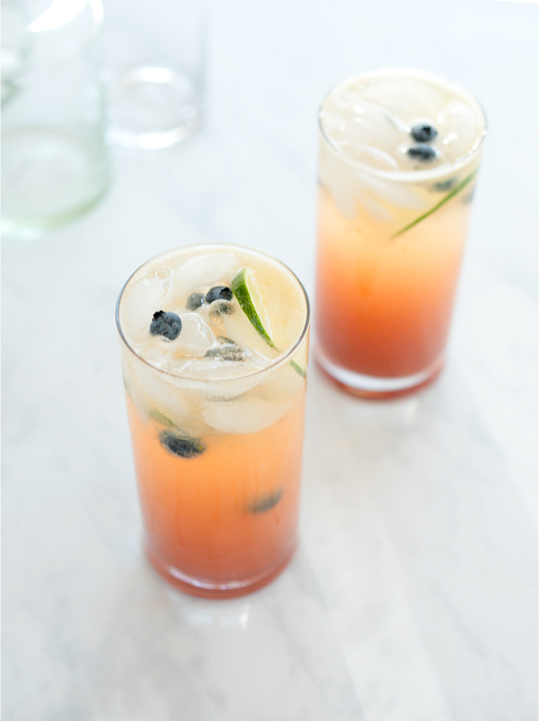 If you were a fan of fruit punch as a kid, try this spritz made with fresh blueberries and peaches. It’s a little bit sweet and a tad bubbly without any refined sugar.