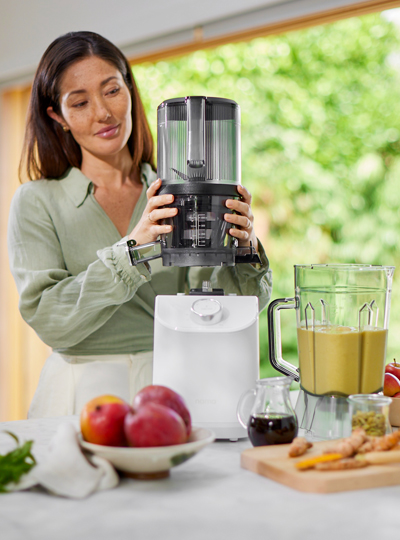 The juicing chamber and blender jug are both designed to cut down on prep time so you can load a whole recipe at once without the need to cut your produce into small bits.