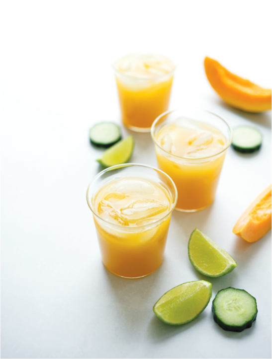 Papaya is known for helping digestion thanks to its papain enzyme that helps break down protein. Enjoy this tropical flavor combo of papaya, lime, and cucumber.