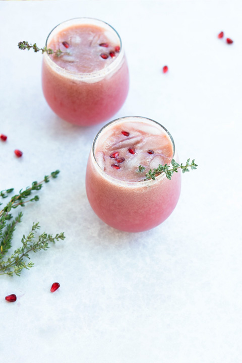This juicy mocktail features the best of the season combining sweet pear with tart pomegranate and lime. This recipe is inspired by @jeanettevelasco.