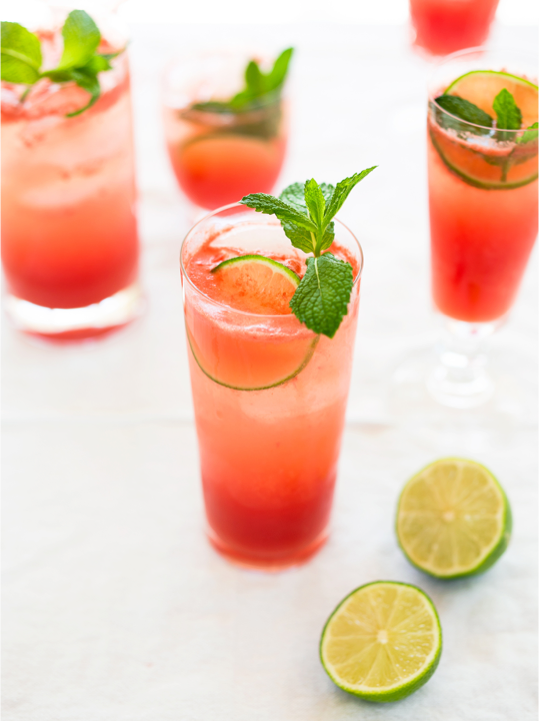 The name of this drink translates to “fresh water.” It’s made by combining one or more fruits with a sweetener and water. This version features mint, lime, and watermelon for the perfect summer treat.