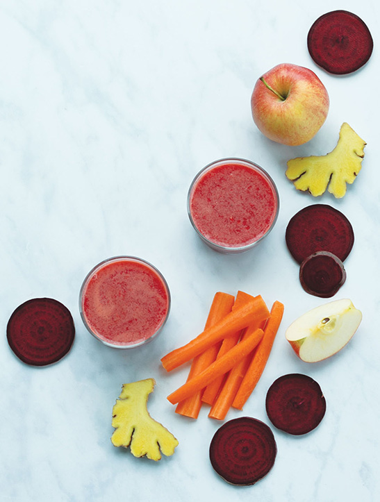 This tasty red juice is high in beneficial plant compounds. The carrots offer beta-carotene, while the apples offer quercetin. The ginger adds not just a fragrant zest, but also gingerol, a plant compound that helps move food through your digestive tract with ease.