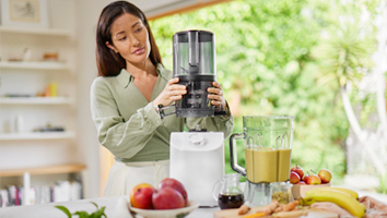 The juicing chamber and blender jug are both designed to cut down on prep time so you can load a whole recipe at once without the need to cut your produce into small bits.